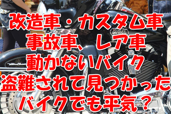 改造車・カスタム車・事故車、レア車・動かないバイク・盗難されて見つかったバイクでも平気?